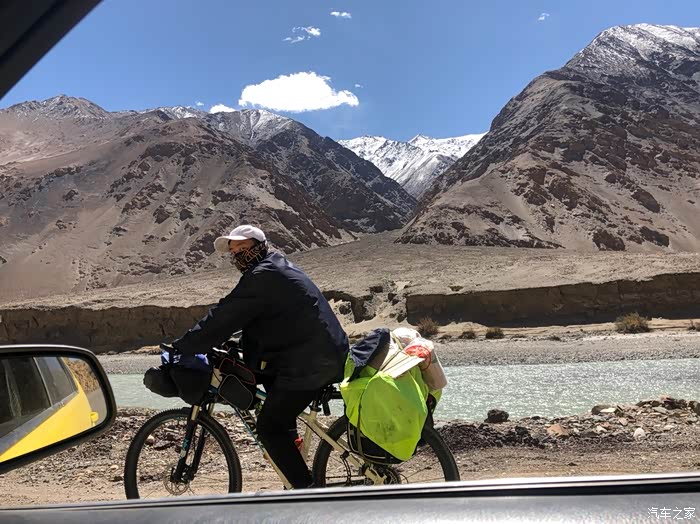 途中遇到两个骑单车的人,这个小伙子说有点感冒了,我们给了他一盒白加黑。他说他们骑完219新藏线从叶城到拉萨大概要40多天!2000多公里。。。。在下大写的佩服!这个坚强的意志力,这么高的海拔,这么严寒