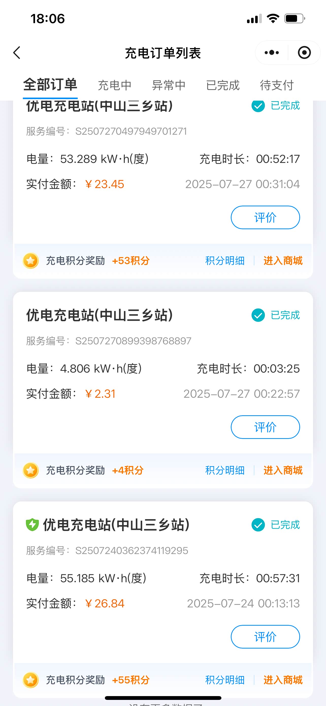 还有就是有家用充电桩是比较省的,因为家充桩坏了,出去外面充电了三次,平均每次都26块有多,还是很肉疼的。