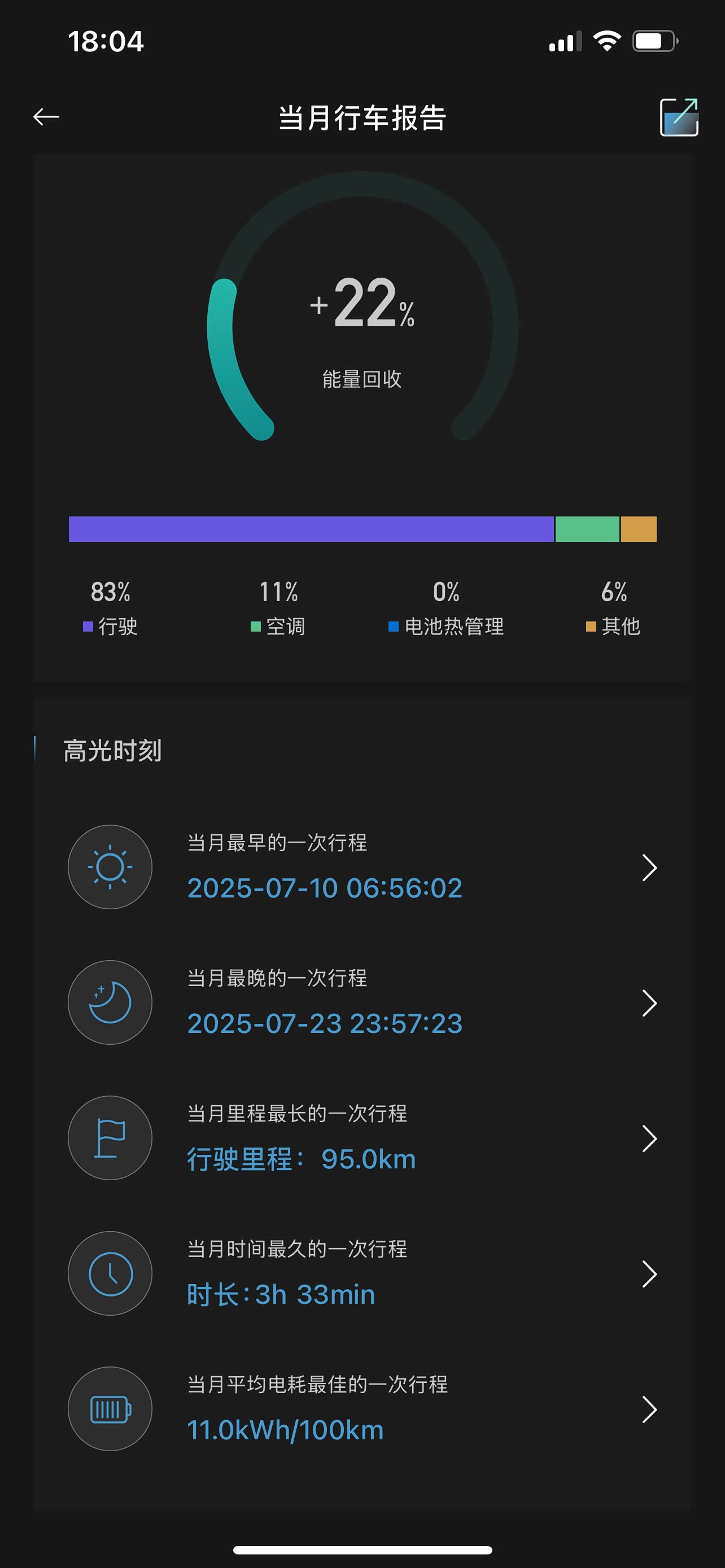 7月份已经结束了,也分享一下我的用车一些情况,我的极狐T5行驶了2464.2公里,其中上班行驶了2200多公里,因为每天上下班通勤距离有60公里这样(包括去购买早餐的路程),剩下的就是上班期间去处理事情而产生的路程占使用的89%,剩下11%的就是放假和下班时间带家人到附近的商场或者广场、露营地去游玩。