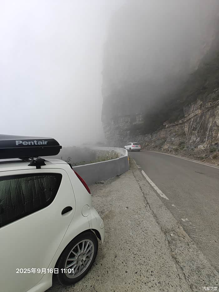 途径玉峡关之后,一段路云雾缭绕,必须开雾灯