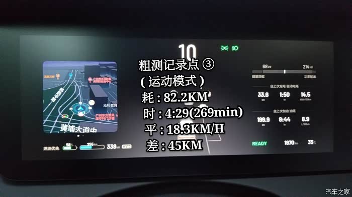 开始以上详测时,我们先做了个粗略测试。用半箱油测试动力模式舒适和运动的区别,再重新加满油详测。最后看到粗测结果,我们决定只测试舒适模式下的油耗。