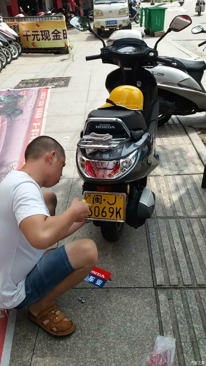本田店的销售亲自上牌,很细心,连牌子上面的螺丝帽子都对准了盖上去