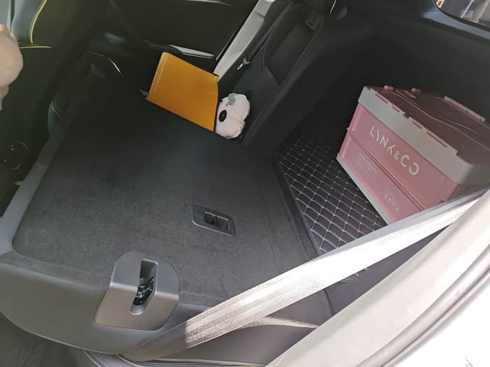 领克的后备箱小一直是被大家吐槽得最多的一个点,毕竟车身长度有限,为了保证前后排座椅的舒适宽敞,还是不可避免牺牲了后备箱的容量。但同时领克也贴心设计了后排座椅可放倒的模式,在后备箱容量不够用的时候,通过放倒后排座椅增加了载物空间,这样有一定长度的居家物品也能轻松放入车内。