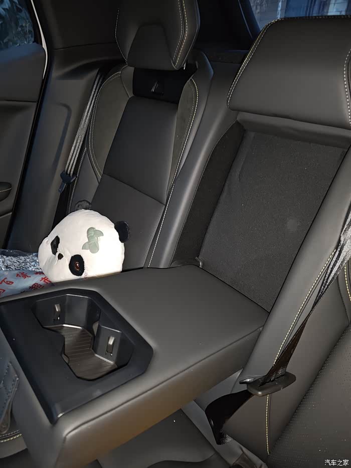 咱们小车车后排还有一个隐藏式的扶手。把后排座椅中间的靠背掰下来,就变成了一个扶手加杯架,和朋友们出游她们也能把饮料放上面,靠坐着更舒适。这个小设计得到了朋友们一致好评。