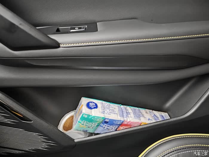 不知道大家注意到没有,前后车门侧的储物格被设计成了倾斜式的,随手一放物品就会自然滑落到底部,行车再颠簸也不会掉出来,同时拿取又非常方便,可以说是非常人性化的细节之作。而门把手旁的小凹槽刚好可以放下一截口红,有时候我也喜欢把手机插在这里,停车缴费顺手一拿特别方便。