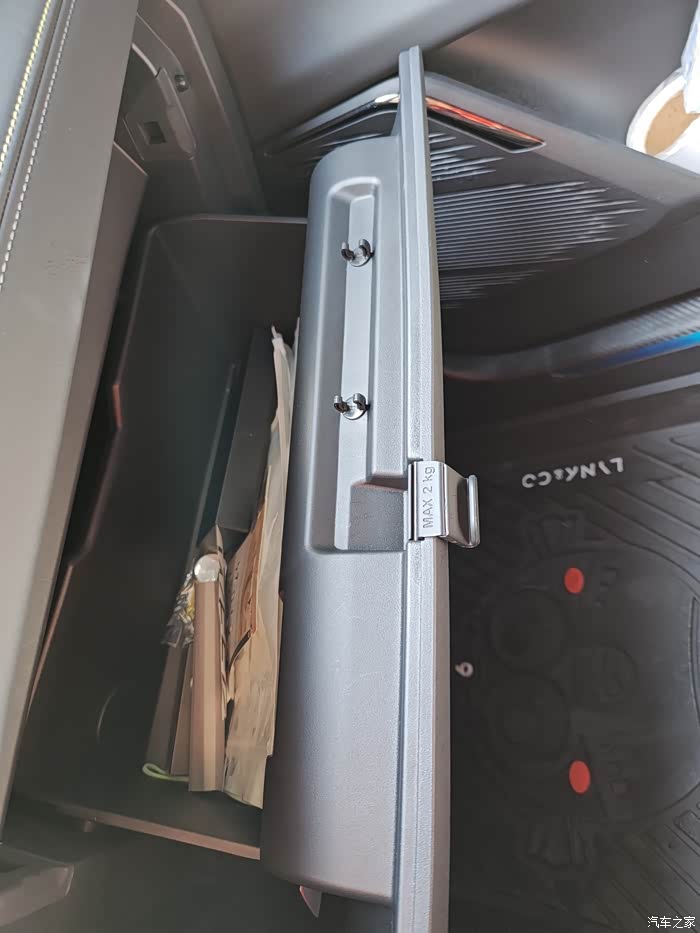 这个只能说是每辆车车都有的一大重点存储空间了,里面塞满了各种杂七杂八顺手而放的小物件。我甚是把交通事故时要穿反光背心都塞里面了,以备不时之需。领克的扶手箱里还隐藏了U***接口,可以用来给手机等设备充电。我是直接插了个U盘放音乐,哈哈,老古板的做法勤俭持家有木有。