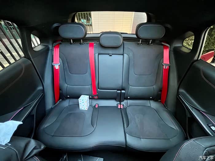 后排空间还不错. 得益于SUV造型, 腿部支撑还是比较好的. 后排坐三个人肯定还是挤. 两个人应该很舒服.