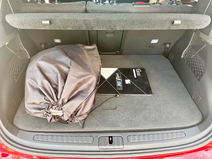 第一次打开前备箱. 看着还挺规整, 其实都是塑料板糊着遮羞用的.
