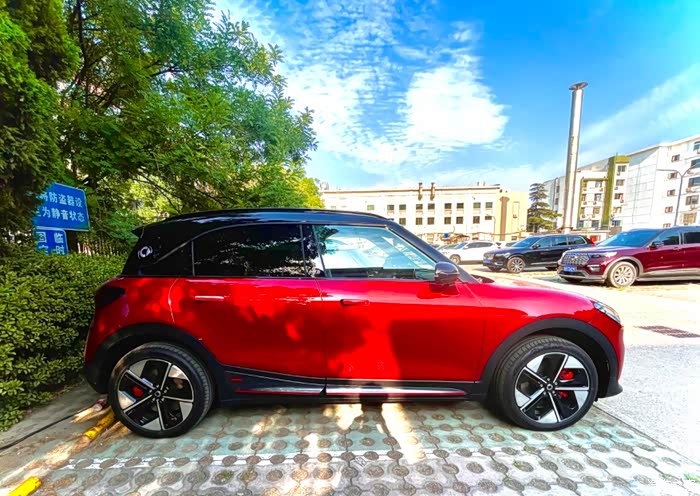 开起来质感有点儿差了, 也搭上试驾车有异响, 而且不止一处儿. 转向手感会有一些隔绝感. 试驾车异响就意味着我们买回去开一段时间也有很大概率会异响. 外加外观真的不在我们的审美点上. 都说像MINI, 但是我们感觉一点儿都不像. 我们自己也有MINI, 也停在一起对比过, 真的跟MINI区别好大...尤其前灯,有一种呆滞愣神儿的感觉. (是因为只有眼睛没有嘴么?