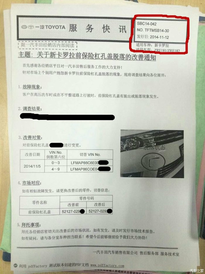 有车友质疑此事真伪,现附上丰田内部文件,注意红色框内是文件的标号和名称。。。