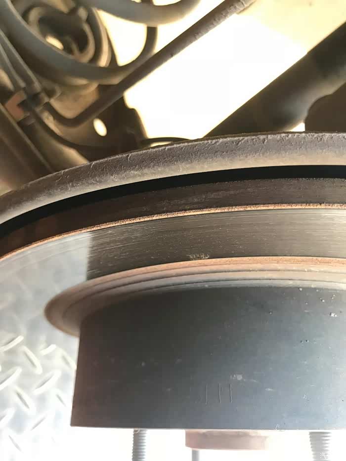 用手摸了一下确实刹车片被磨得有些细微的槽