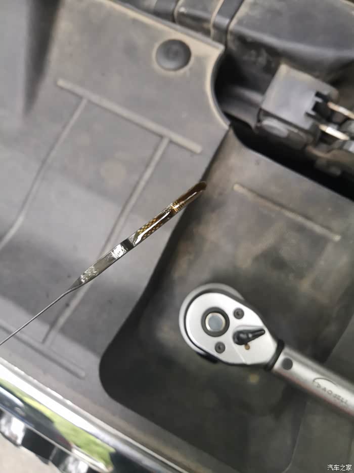 买了根机械机油尺,发现机油止回阀能截留大概0.3升机油。0.3升机油大概也对应电子机油尺两格。