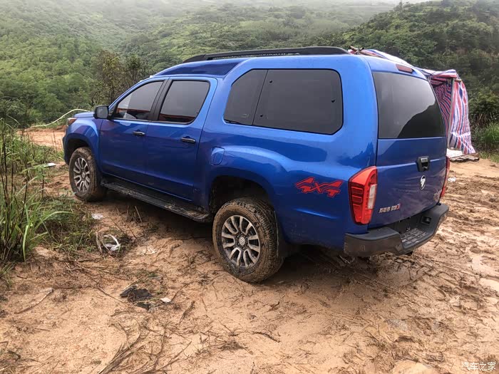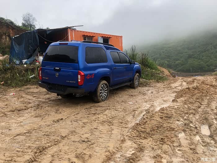 提上车第一天就是奔向工地了,接连几天下雨,山坡路上也是充满泥泞,偶尔打滑,四驱也就派上了用场。闲暇之余,拍点照片,想买这车型的可以参考。车头还算耐看,至少还是原创的,大灯下方的日行灯挂挡才亮,停车空挡不亮,有点奇葩