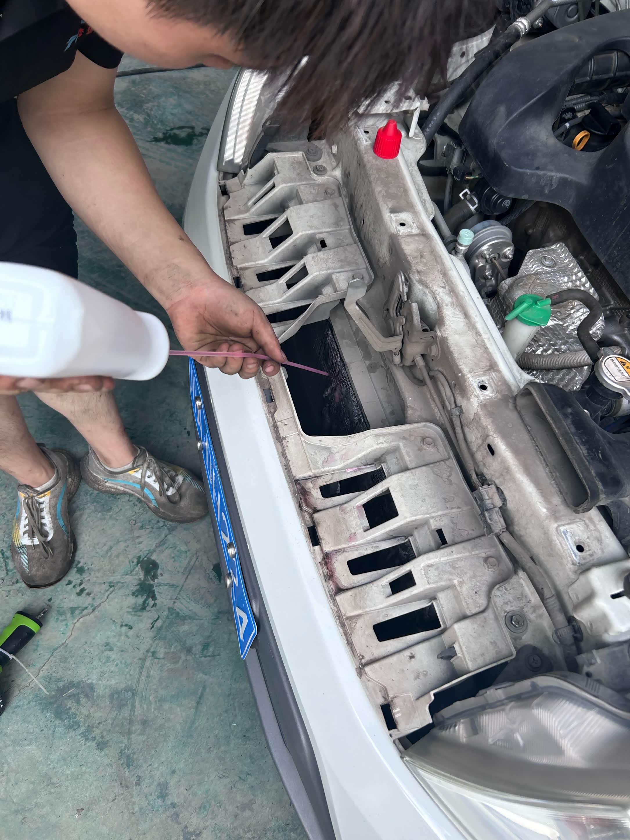 开始就觉得不想拆前杠但是又想好好洗洗风扇水箱那一坨,之前看到过可以把中网拆了空间应该够,就联系了这家店。小伙子看了后表示不拆也行就开干