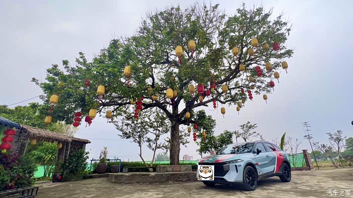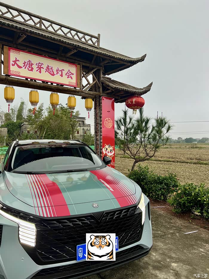 把大V开到我们这里的灯会,稻田和年味相结合,再搭配大V的潮流风格,别有一番滋味。
