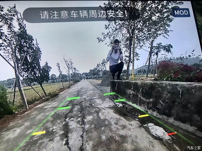 大V的倒车影像十分清晰,周围的障碍物能看得一清二楚。