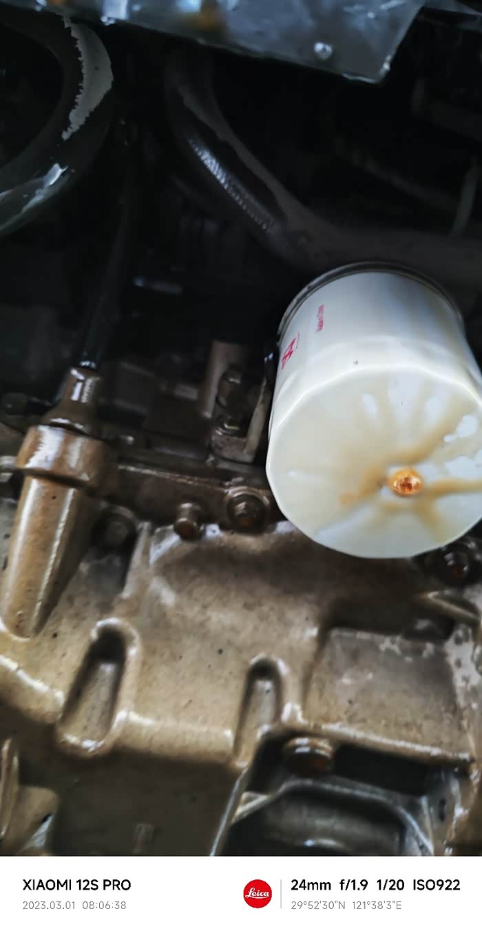做完移车,发现地上残留一滩机油,因为拧下机滤流了很多,也没太在意。四千多公里就换了,油干净也正常。