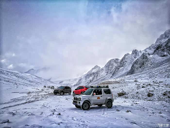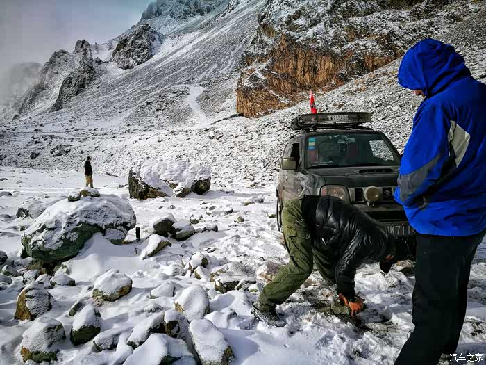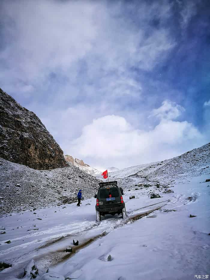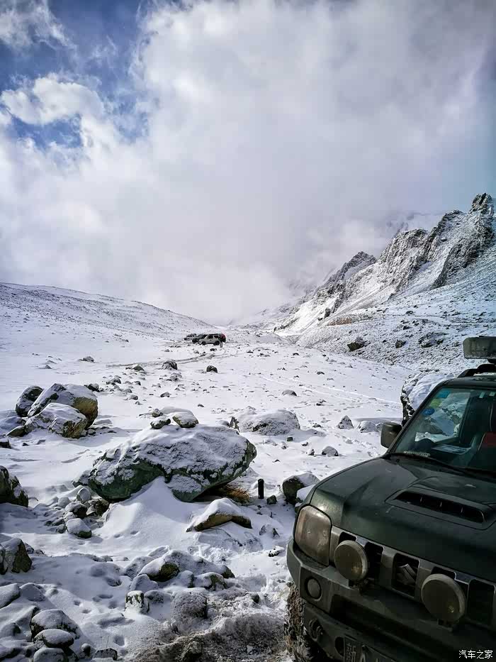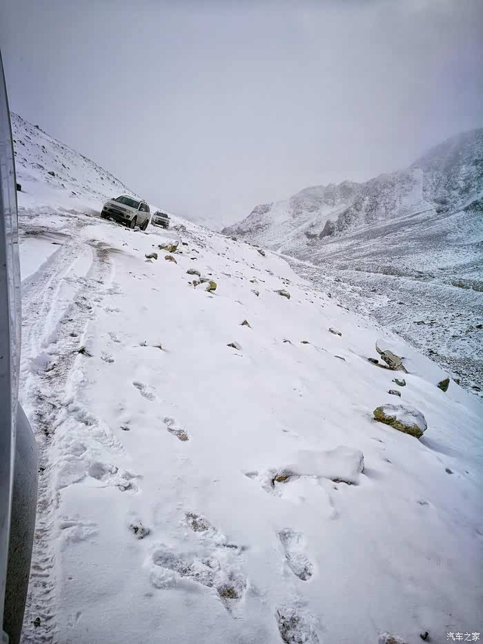 继续前行……当行至海拔3000米左右时,随行的其它几辆车双龙爱腾和帕杰罗劲畅由于车身重,打滑甩尾厉害,不能继续往上爬了……