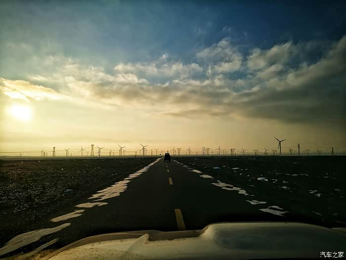 返回的路途也是美美哒……夕阳照耀下的风车,金黄的晚霞和黑色的乌云形成强烈的对比,再见2016!迎接2017!