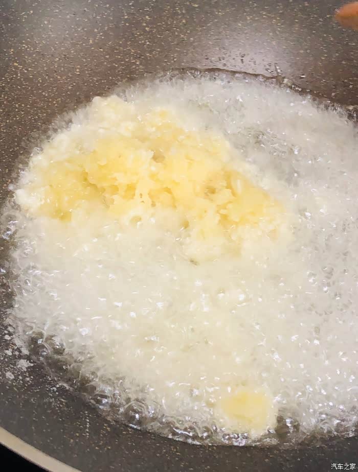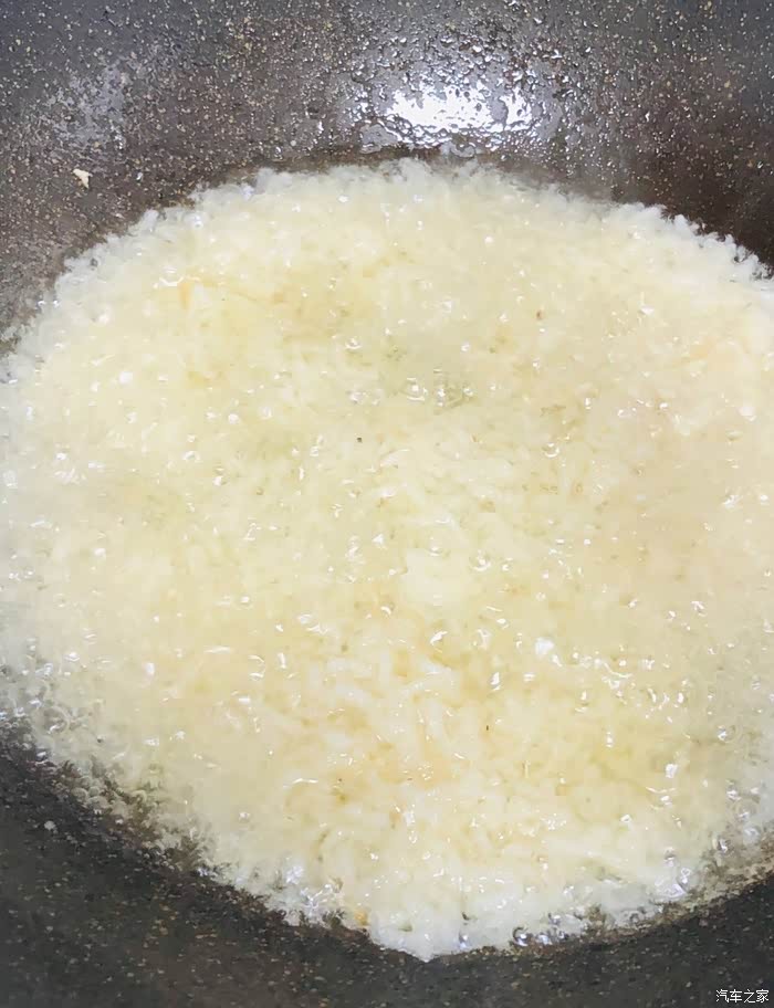 锅烧热倒多一些食用油,倒入2/3的蒜蓉爆炒。