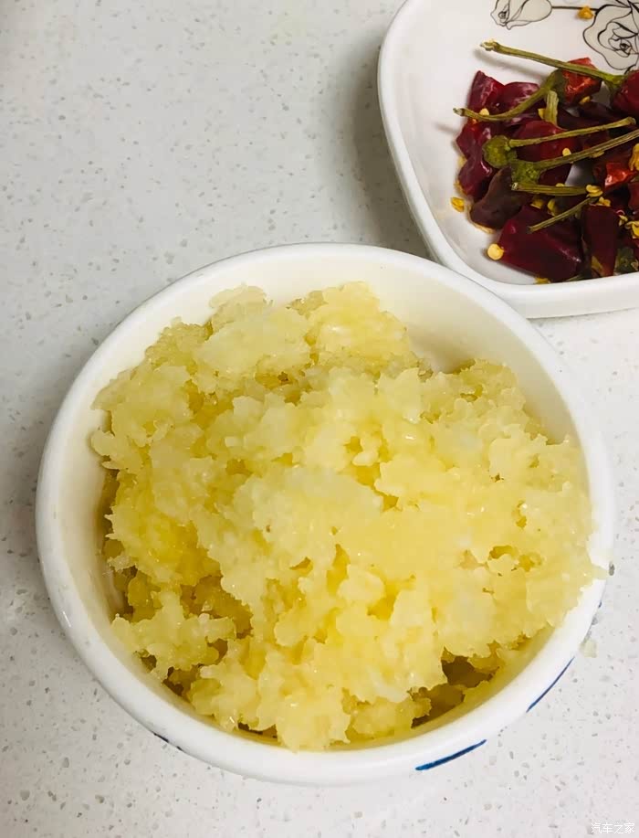 生姜切片,大蒜,鸭肠,蒜蓉量一定是可多不可少,准备一些干红辣椒。