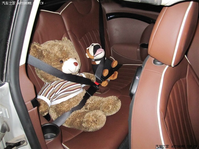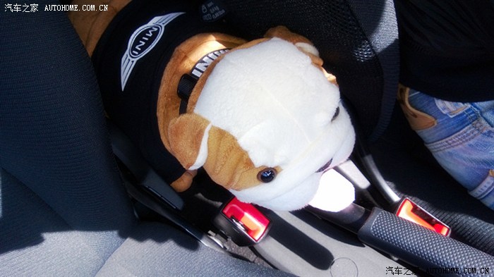 公司年会抽到个小熊,放在后座陪斗牛犬。