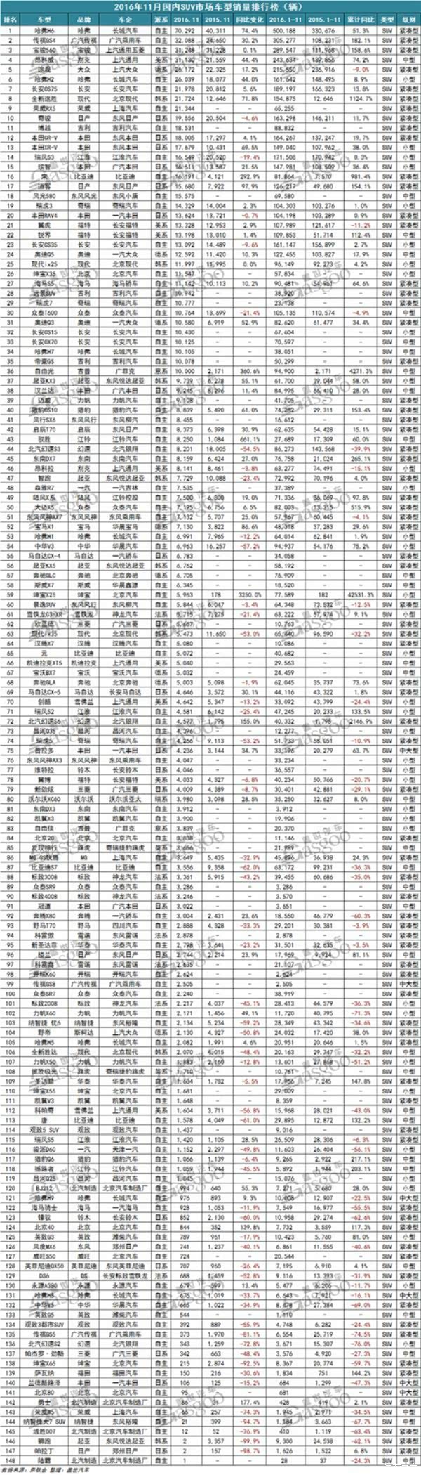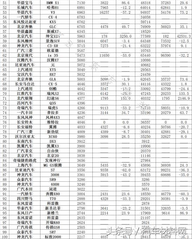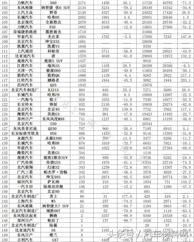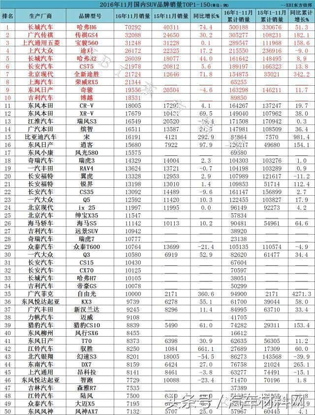 11月SUV销量排行榜,虎7排29名,神车破7万。