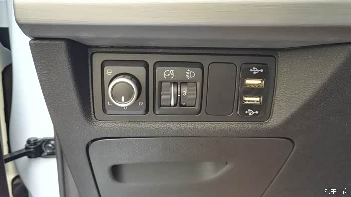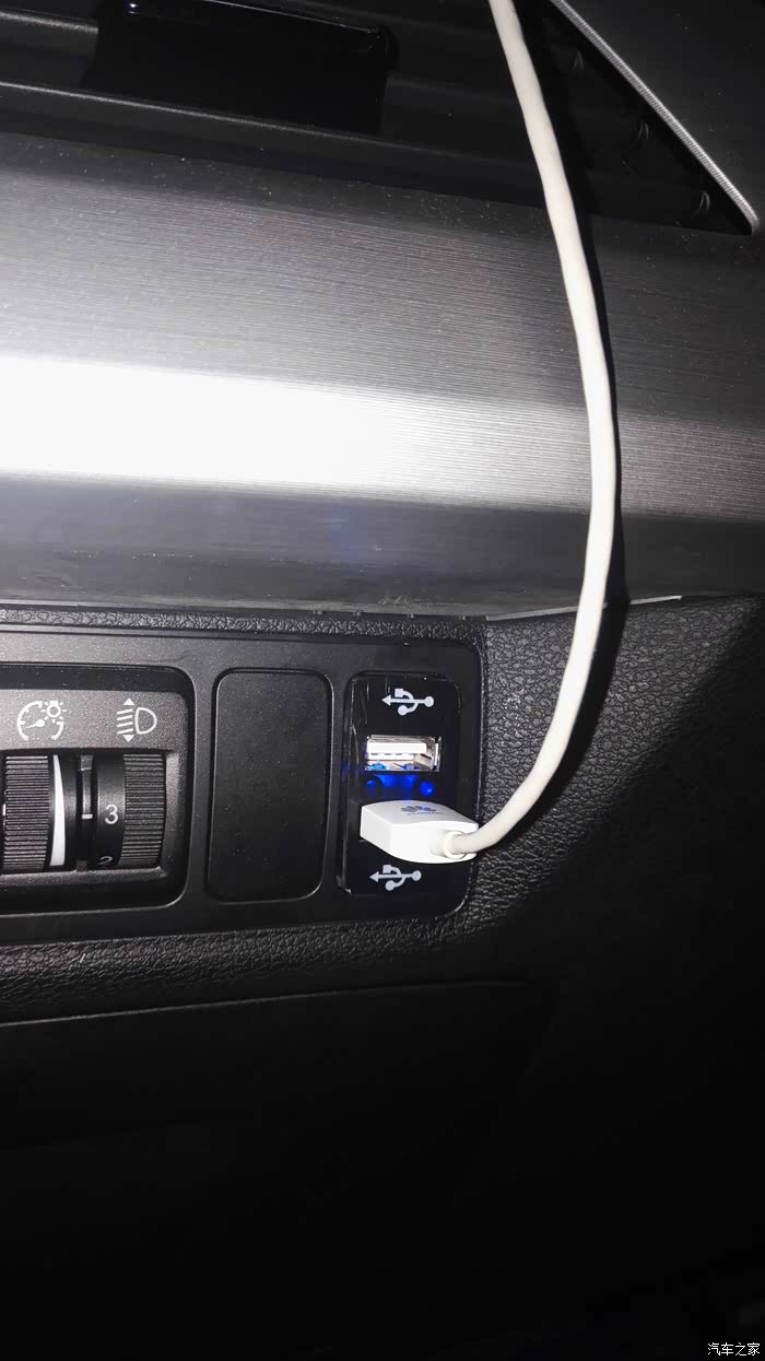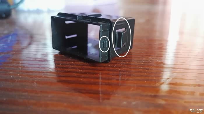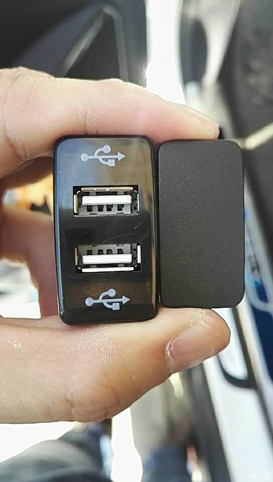 驾驶座位置的仪表板开关组有预留两个接口,要把盖板打开。量了下盖板是37*19,就上网找合适的USB车充插座。