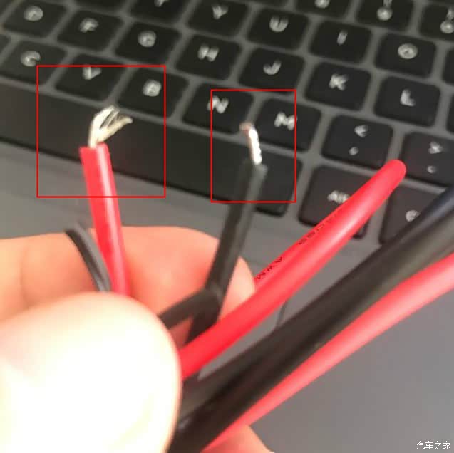 对接后的两根线,红线要跟取电器相连,黑线接地。