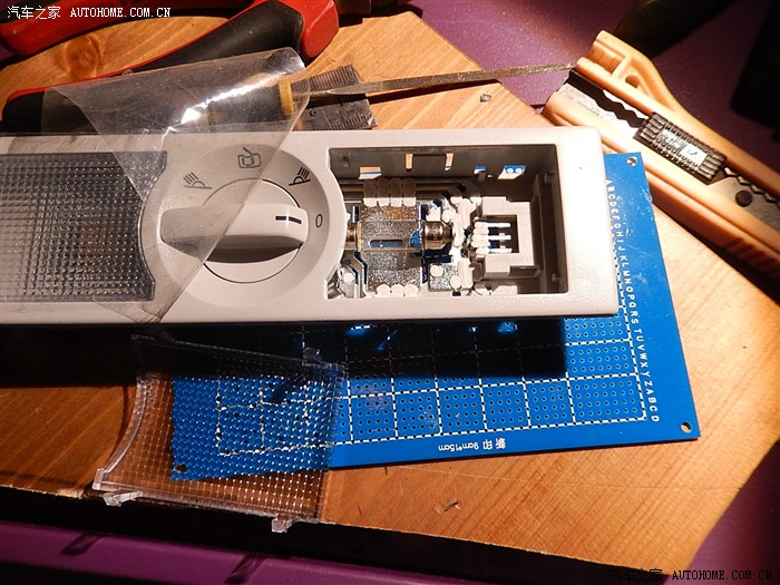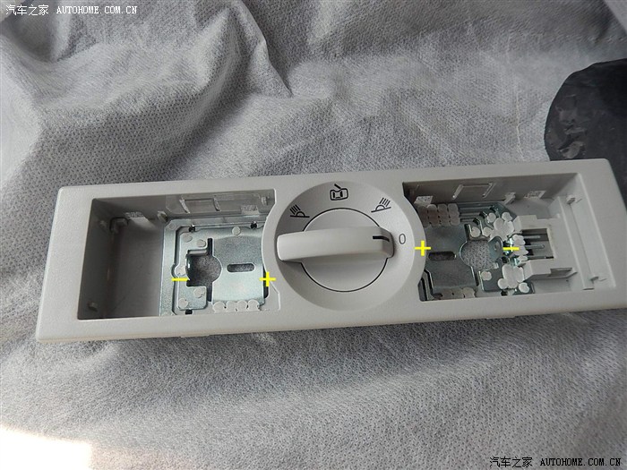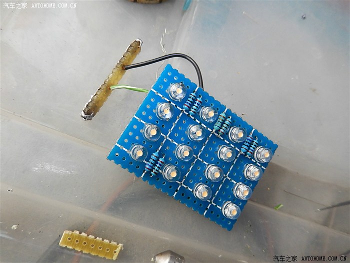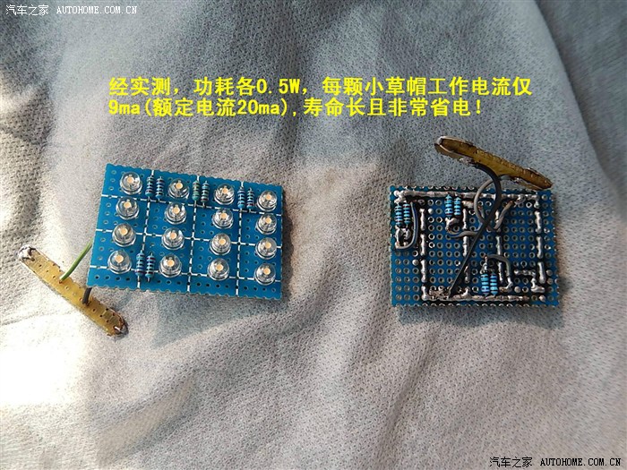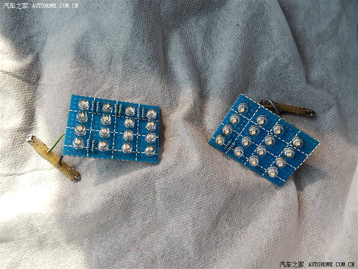 到货后忘记拍照了,我直接就把上面的两个卤素灯泡抠掉了,方便确认灯座正负极及LED灯的制作尺寸