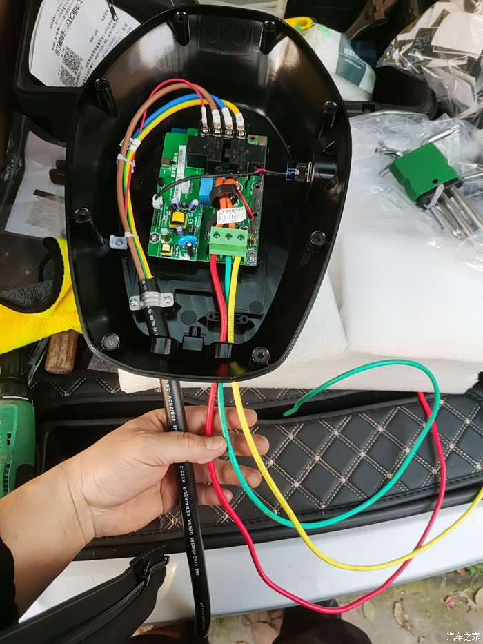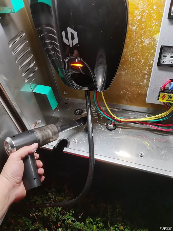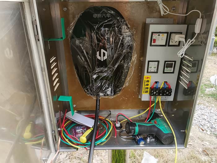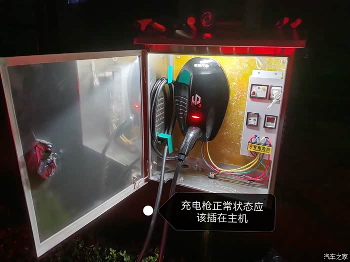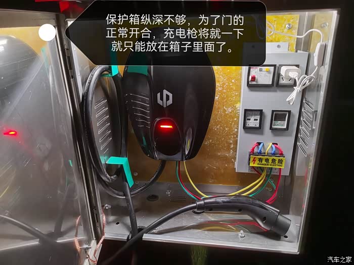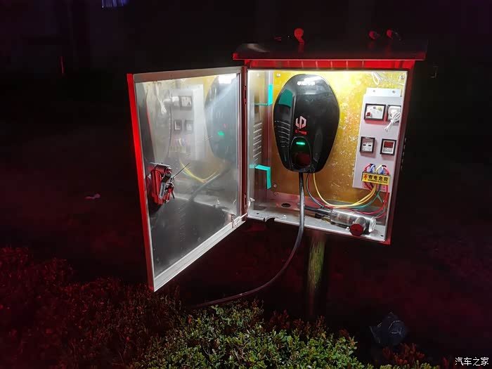 到这一步,充电桩就安装完毕了,由于保护箱尺寸买错了,平时充电枪只能直接放置在保护箱内。