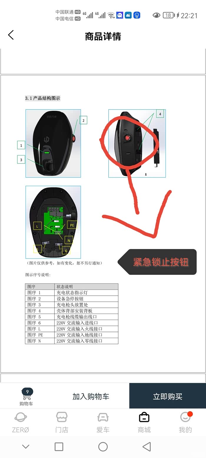 显示未正常充电,观察充电桩,原来是侧边有一个紧急锁止按钮。是按下的状态。