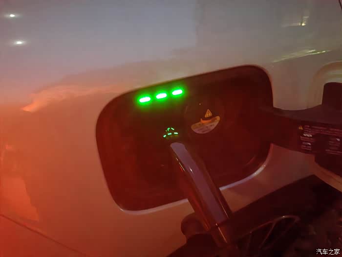 一路绿灯畅通无阻。充电桩绿灯表示工作正常。