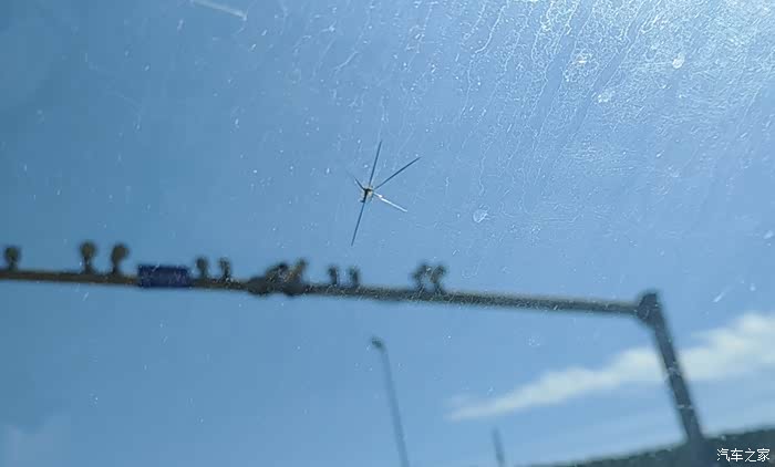 前挡风玻璃被砸裂的地方