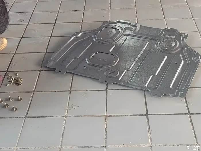 看到车被升降机升上去,第一次知道车底下长什么样,之前没有下护板的时候,都暴露在外面,还好比较幸运,没有很严重的磕磕碰碰,不然这下面可遭殃了。两个小哥先确定下护板的方向,把螺丝螺帽卡住,对齐位置,就可以拧螺丝了,最后用扳手拧紧就可以了。我还用力锤了一下车子的下护板,确定是卡死了。多了一层保障,这样不管是市区还是乡下的路段都安心多了,下护板加手工安装费一共就花了100出头,还是比较划算的。