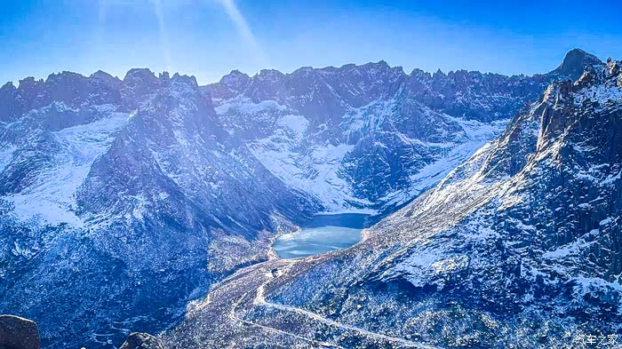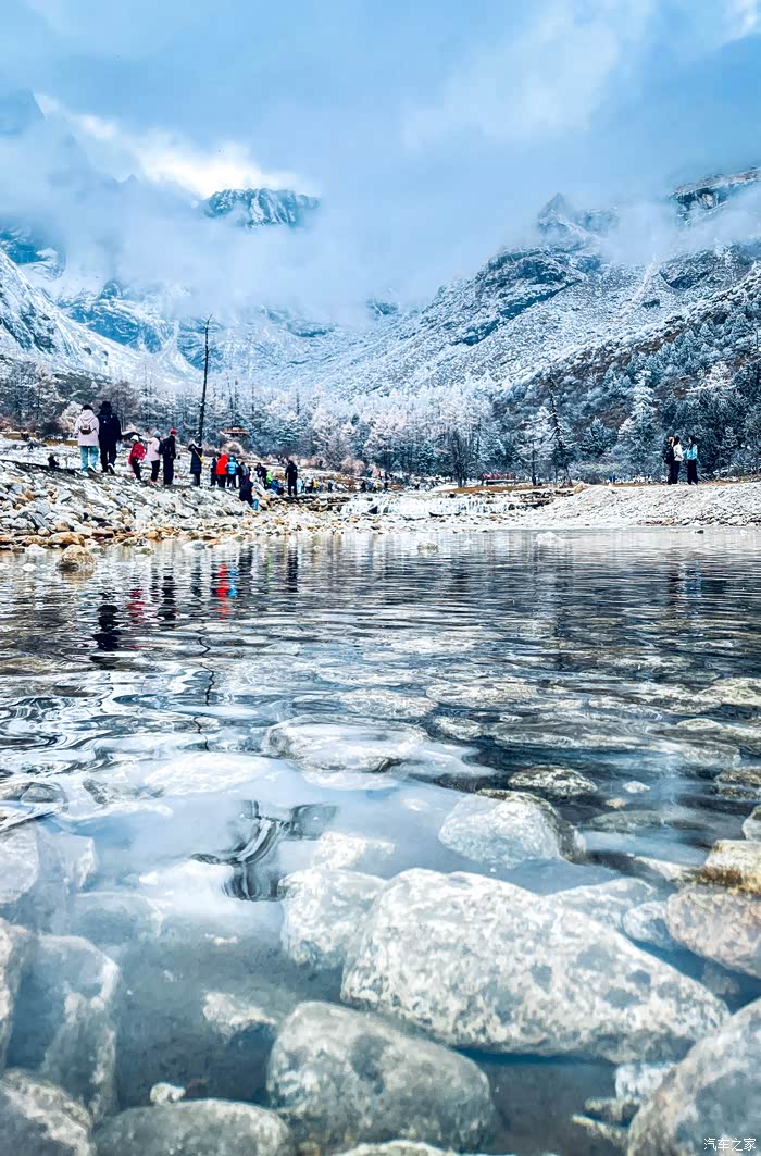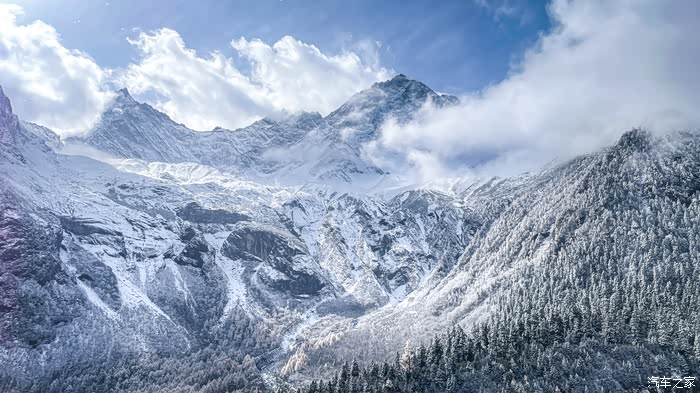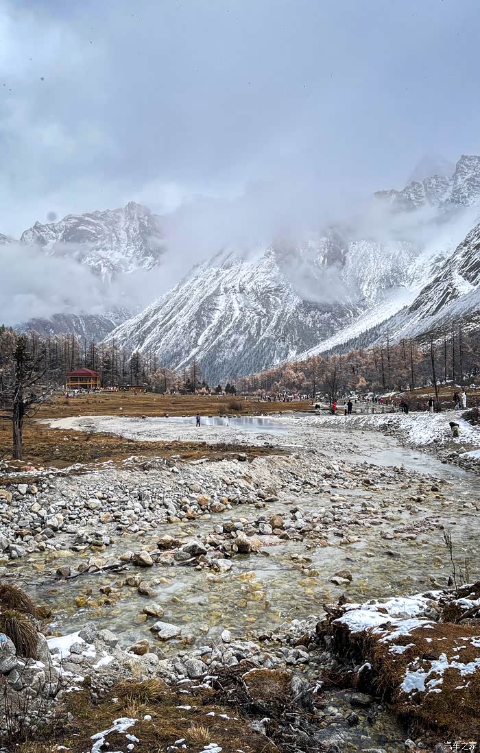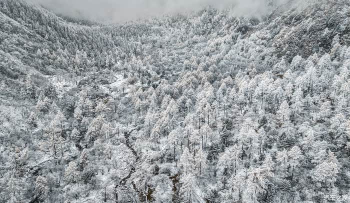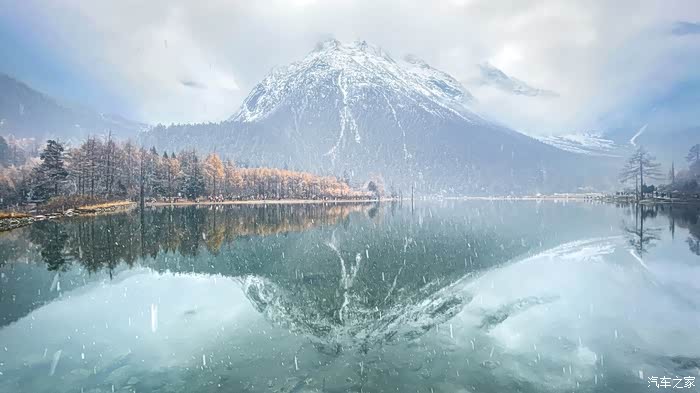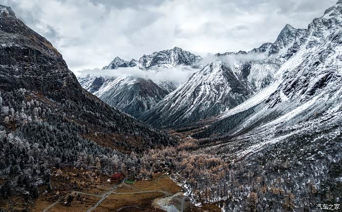 从四姑娘山到毕棚沟会经过理小路,一条网红的顶级景观大道,平均海拔4000米以上,经常会遇到堵车、大雪等复杂路况,我们到得早,并没有遇到堵车。但却遇到了大雪,从小金县出发的时候天气还好,结果在爬山的时候居然开始下雪了,从色彩斑斓的彩林一下子就变成了银装素裏,这一路也是惊喜和惊恐连连,惊恐的是担心雪后的路况,事实上下雪还好。只要道路没有结冰,小心车是没有问题的。到达毕棚沟的时候还在下雪,雪中的毕棚沟相比四姑娘山的鲜艳又是另外一种风格:朦胧美。