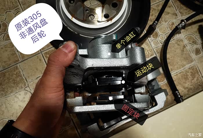 原车后轮是单缸的,电子手刹和一个卡钳一体化。