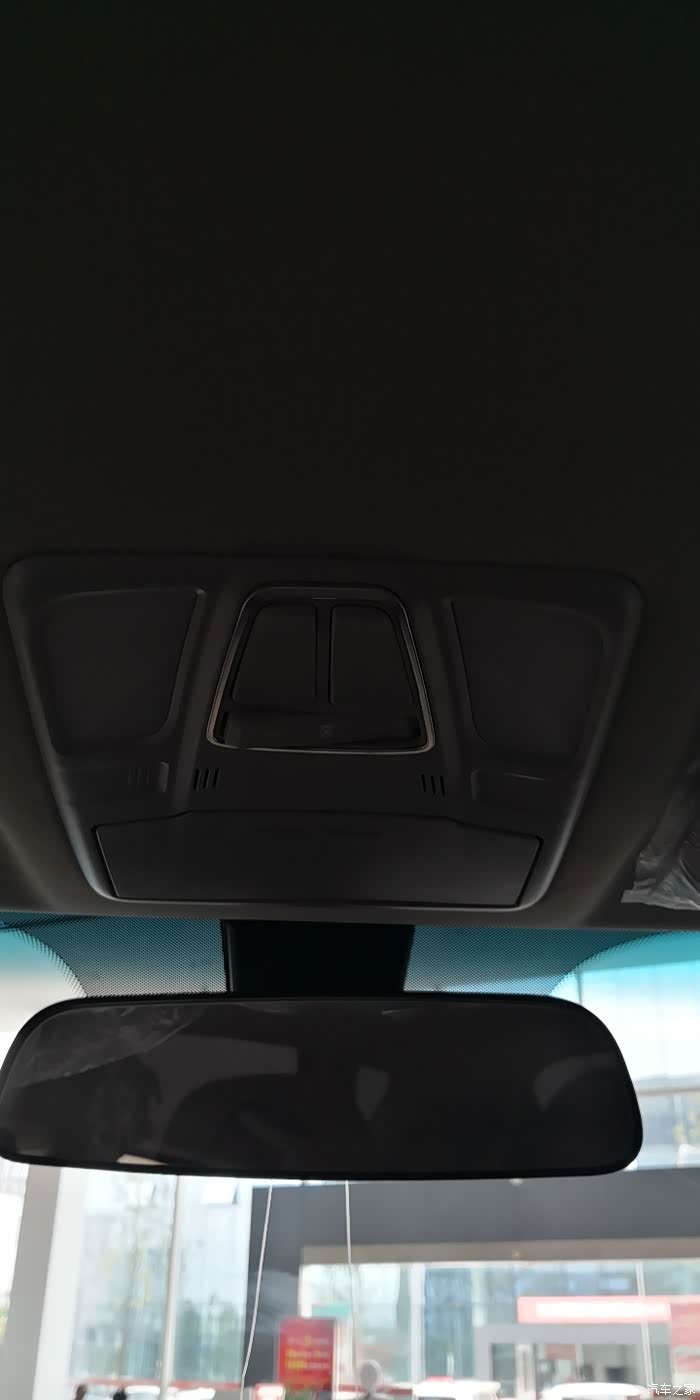 前顶灯(拍的有些暗)亮度依然是黄光,后排阅读灯在车顶中间,这一款没有天窗。