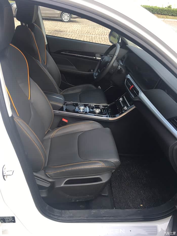 从后往前看,皮质座椅,多处内饰采用软包裹,触感细腻,也给车子增加了档次感