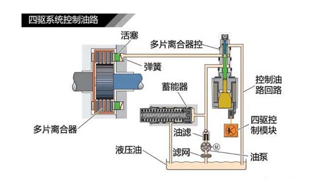 两年后,也就是2004年,第三代瀚德四驱系统发布。这一代的核心是通过四轮转速的传感器给到ECU的数据控制,电控系统中原来的液压泵也变成了电动泵和单向阀门,系统反应的时间再次缩短。此后,在2007年,瀚德还在第四代四驱系统中加入了油压蓄能器,进一步提升了系统的反应速度。