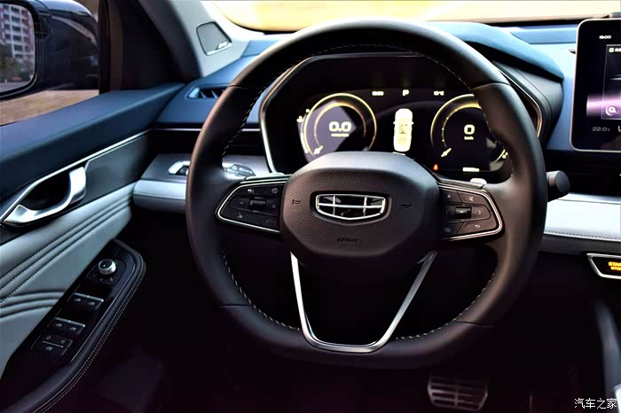 星瑞的内饰采用了“时空交叠座舱”的设计语言,流动、简洁的线条呈现出设计的层次感。得益于12.3英寸悬浮式中控大屏的高集成度,且整体偏向驾驶侧,中控实体按键的数量大幅减少,使得整个中控十分简洁,凸显了居家的温馨感,又很显档次,做工用料方面十分考究。平底运动方向盘带有换挡拨片,电子档杆更靠近驾驶员,使得驾驶过程变得轻松享受。