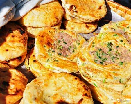 来到喜州不得不吃的喜州粑粑,有甜咸两种口味,甜酱一般放玫瑰酱或豆沙,咸酱一般为香葱瘦肉。赶紧,趁热来一口。