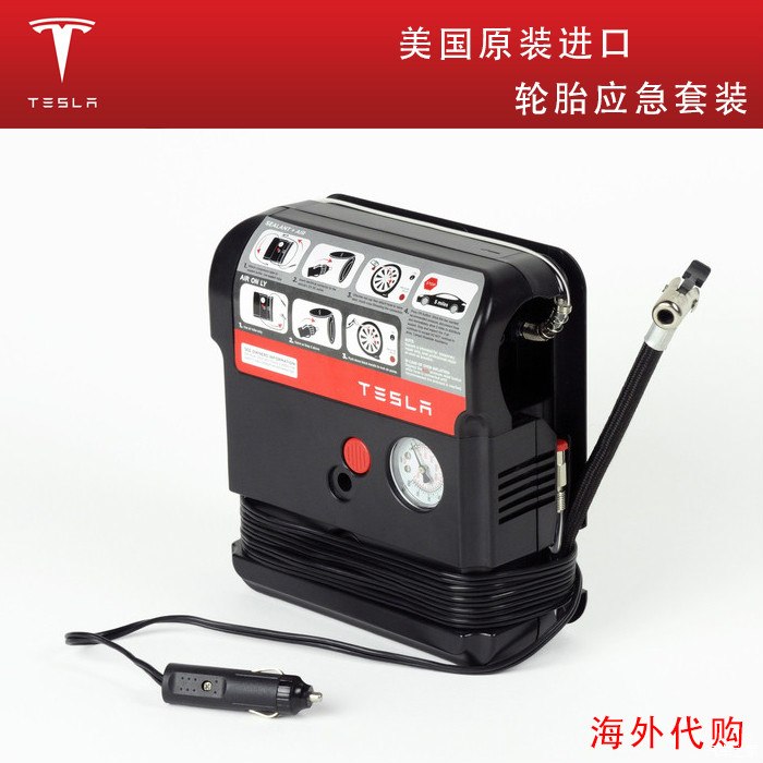 六、由于特斯拉没有配备胎。如果车胎在高速上被扎孔,就是大麻烦。幸亏小马哥特斯拉为大家配备了“保车胎不保人胎的神器—特斯拉应急充气泵”。