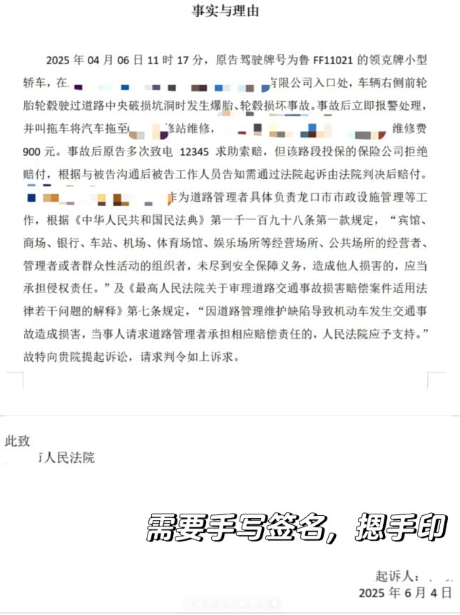 但是我是因为路面大坑导致的爆胎,大家一定不要自掏腰包,要找路政索赔!