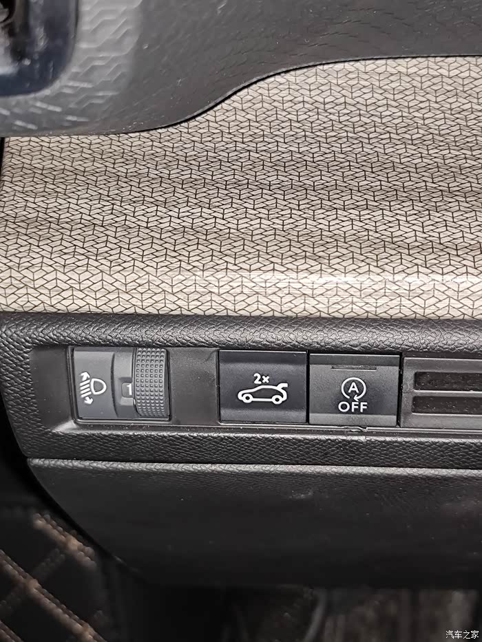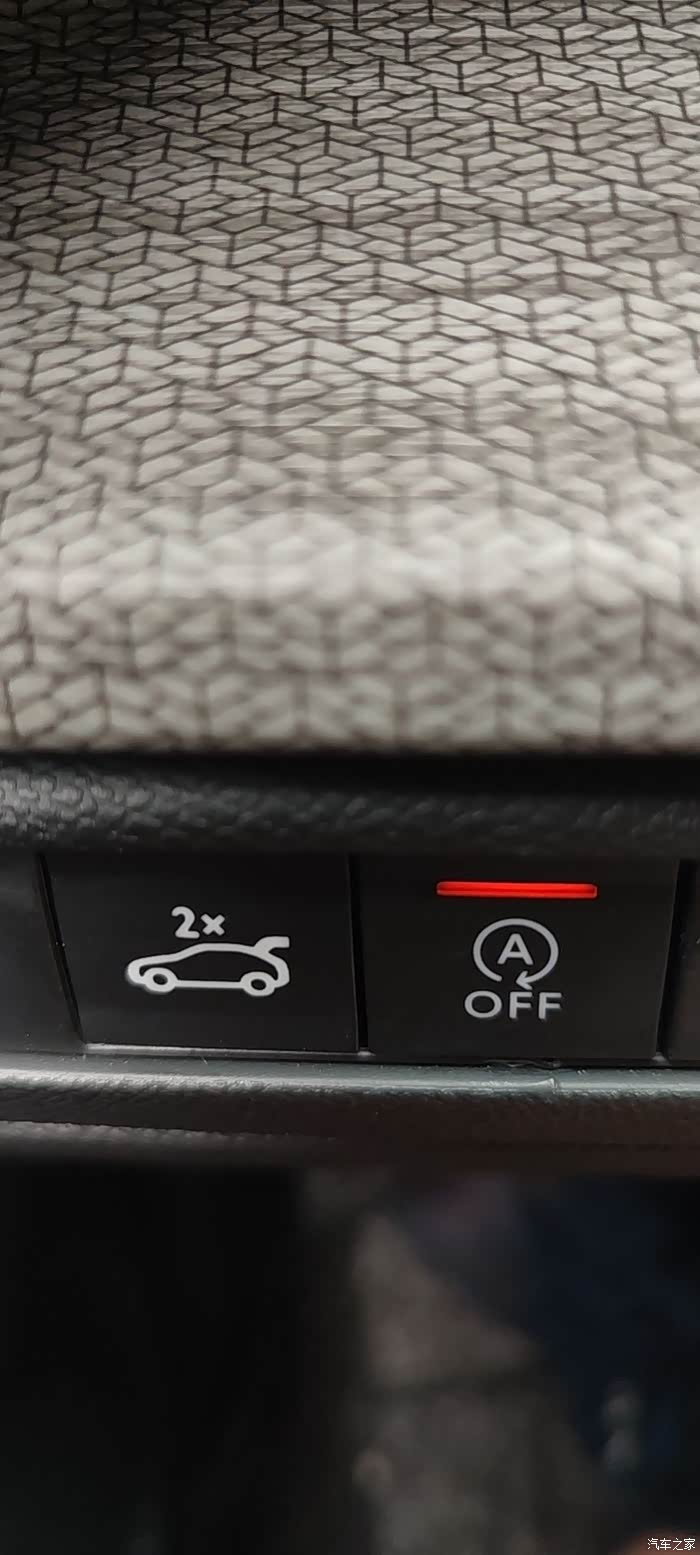 2. 主驾驶位的尾门开启按钮做工和标记图形很粗糙,跟边上的启停按键一对比,尤其明显。并且其他原车按键夜晚会有背景灯,这个加装的尾门控制键,不亮,不亮,不亮!!! 但是尾门上面的红色按键可以亮,可以亮,可以亮!!!