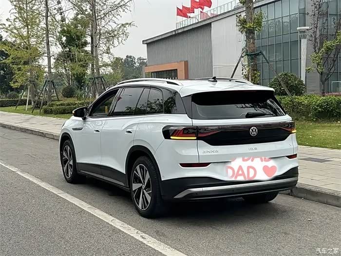 作为大众MEB平台的一款纯电中大型SUV,ID.6 CROZZ在外观设计上展现出了独特的未来感和科技感。它的前脸采用了封闭式的设计语言,搭配犀利的大灯组以及下方的镀铬装饰条,营造出一种强烈的视觉冲击力。车身线条流畅而动感,车尾部分则简洁大方,贯穿式的尾灯点亮后辨识度极高。