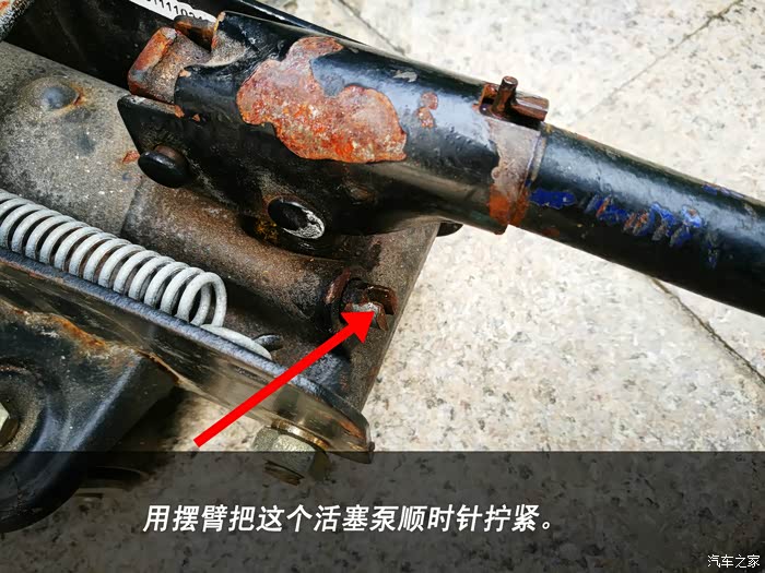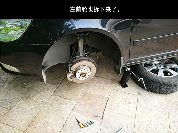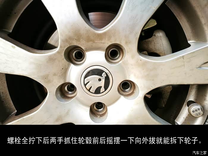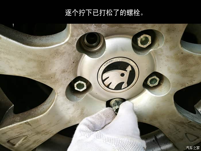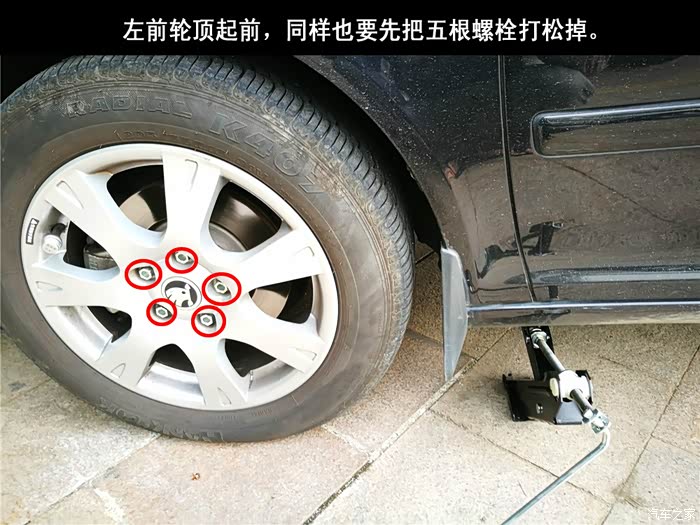 5.打松螺栓一定要在顶起车身前进行操作。因为这时轮胎被压在地面上,有受力,拧螺栓时车轮才不会跟着转。