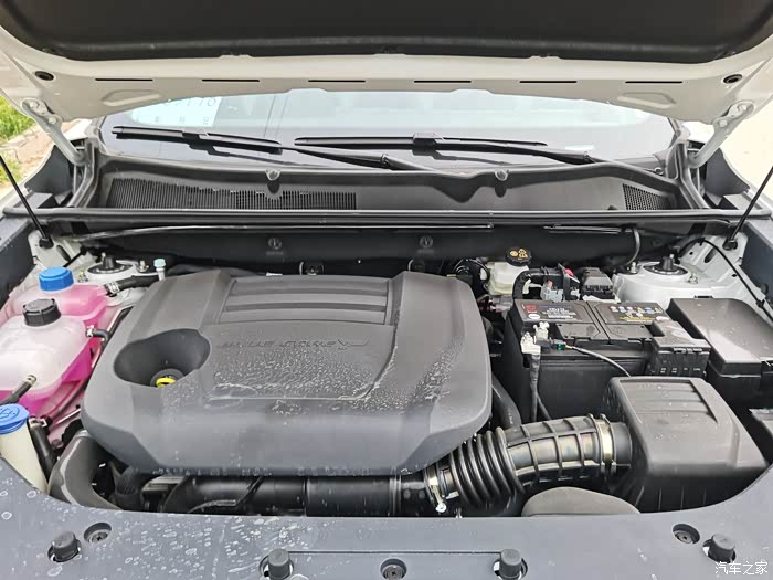 这款就是2.0t的蓝鲸发动机,整个发动机舱的设计是非常的匀称一目了然!蓝鲸的发动机配备的是两个防冻液水壶,可以更好地快速给发动机达到降温效果
