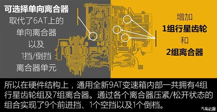 小体积也是这款变速箱的特色之一,通过配备可选择单向离合器等部件缩小了内部空间,使其外部尺寸与6AT变速箱差异不大。变速箱体积小能够减少对发动机舱空间的占用,更利于布置,未来相信也会有越来越多通用旗下的车型使用该变速箱。