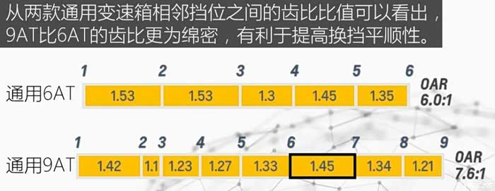 与ZF此前推出的9AT变速箱相比,通用9T50变速箱低速挡齿比更绵密,其中2挡和3挡齿比最为接近,低速情况下平顺性更好,更适合中国的道路情况。从结构和配置看,平顺性是这款变速箱追求的重要指标之一,名为“Shift by Shift”的换挡策略对于降低换挡顿挫、提升平顺性方面有一定的帮助。